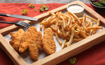 BAHARATLI PATATES KIZARTMASI ÜZERİNDE ÇITIR PİLİÇ