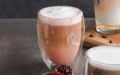 Espresso, süt, beyaz çikolata aroma, çilek aroma