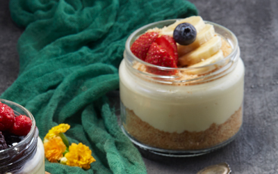 Vanilyalı kek parçaları üzerinde vanilyalı krema, mevsim meyveleri