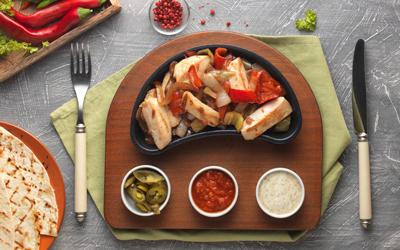 TAVUK DİLİMLERİ, SOTELENMİŞ SEBZELER, DOMATES SOS,